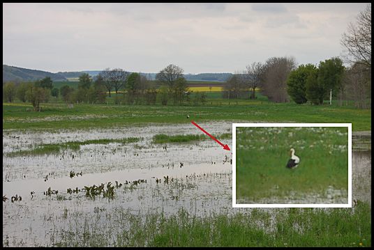 Als weiteren spektakulären Erfolg konnten sich in der Woche 2. Maiwoche alle Korbacher Naturfreunde über einen Weißstorch erfreuen, der sich im Bereich der neuen Überschwemmungszone an der