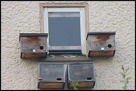 Da Brutmöglichkeiten in den modernen, gut gedämmten und verschlossenen Dächern selten sind, kann man ihnen gut mit hoch am Dach angebrachten Nistkästen helfen (Bezug über NABU KB möglich).