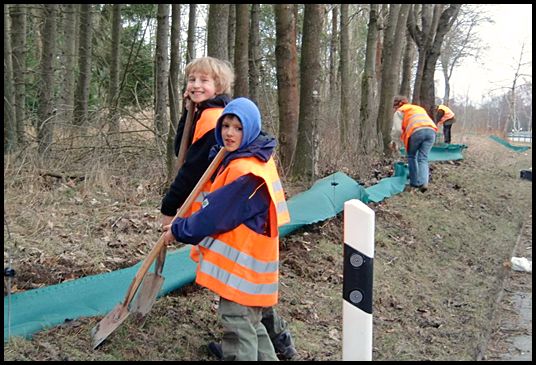 frühmorgens von fleißigen Helfern sorgsam eingesammelt und sicher über die Straße zum Teich gebracht.