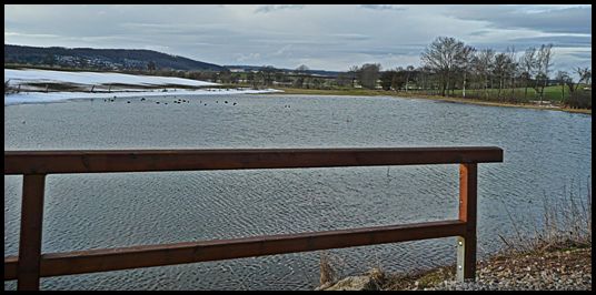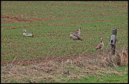 Nachtrag: Auch am 14.4. sind die Nilgänse noch an der Marbeck gut zu beobachten. Zwar verkleinert sich witterungsbedingt der Überflutungsbereich allmählich, trotzdem scheinen sie sich weiterhin