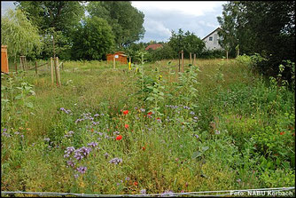 Der Bauhof konnte 8 noch kleinere Obstbäume erfolgreich auf die neue Wiese umsiedeln. Der NABU pflanzte zudem einen Heckenstreifen zur Straße hin aus heimischen Gehölzen. Alles ist gut angewachsen - auch dank des regenreichen Sommerwetters.