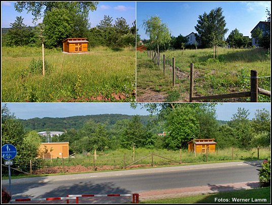 Nun konnte mit einer ebenfalls im städtischen Besitz befindlichen Fläche am Südring/Ecke Moersstraße ein annehmbarer Erstatz gefunden werden. Die Einfriedung sowie das Aufstellen einer kleinen Materialhütte erfolgte durch die Fachleute der Beschäftigungsgesellschaft.