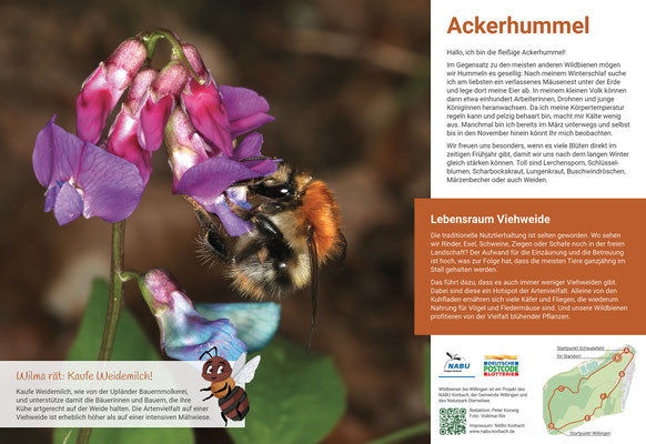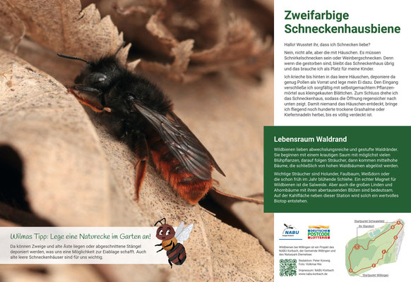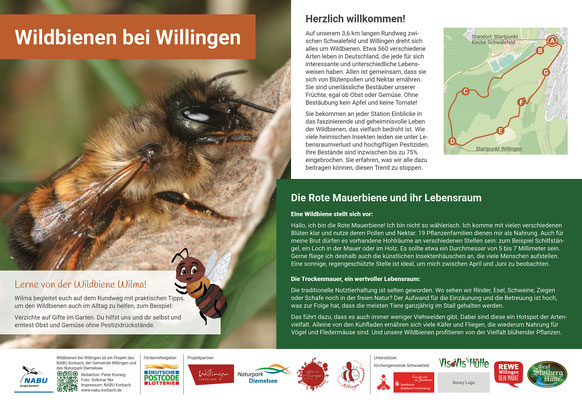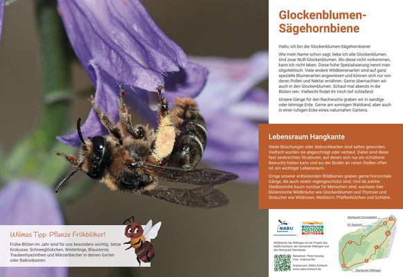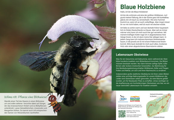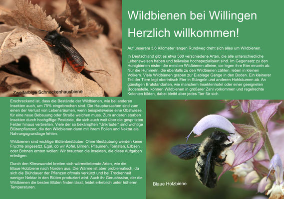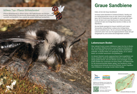 Attraktive Infotafeln berichten an sieben Stationen über das Leben unserer Wildbienen und geben praktische Tipps, wie wir unseren Insekten helfen können.