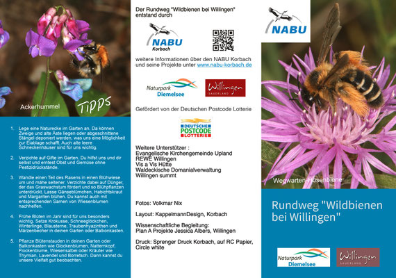 Der Wildbienenpfad ist ein Gemeinschaftsprojekt des NABU Korbach, des Naturparks Diemelsee, der Gemeinde Willingen sowie den Unterstützern "Willingen summt", Waldeckische Domanialverwaltung und der Evangelischen Kirchengemeinde Upland.